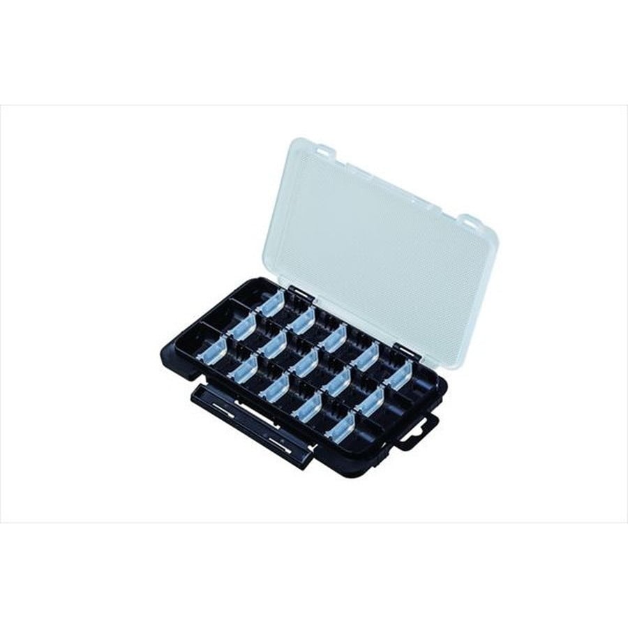 状況に合わせてワームの種類やカラ―を持てるだけ持って行きたい。尚且つ、機動力を損なわずにランガンしたい。そんな相反するアングラーの欲求を可能にするのがこのケース。厚さわずか“18mm”に設計することでかさ張ることなく持ち運びが可能。さらに、2つのケースを簡易ドッキングでき、蓋にはワームスリップ加工を採用。ランガンシステムBOX上段にジャストフィットするサイズ設計。ライトゲームアングラーを手厚くサポートするケースです。スリットフォームケースJともジョイントが可能なので、あらゆるシチュエーションに対応します。★サイズ: 175×105×18mm 本体:ポリプロピレン 可変仕切板15枚付 ※実物と色が違って見える場合があります。あらかじめご了承下さい。