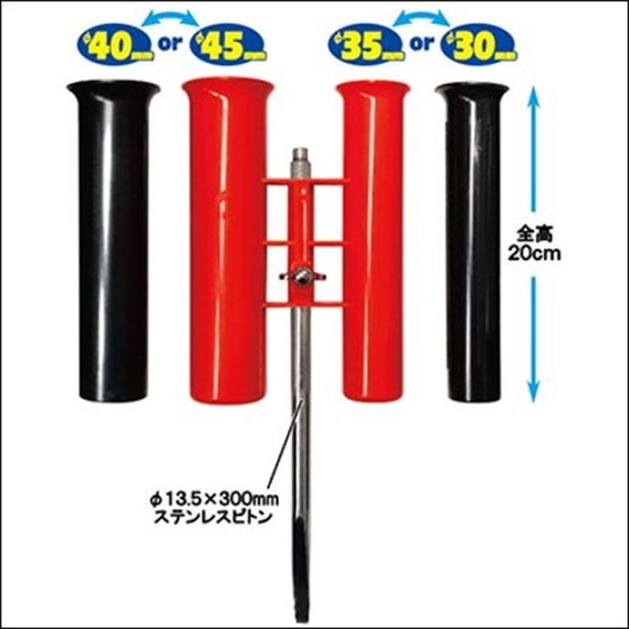 2種類の内径可変パーツ付属で、脱着することにより計4通りの内径で使い分けが可能細身の磯竿~長尺タモの柄まで広く対応!φ13.5×300mmステンレスピトン付き★サイズ:ホルダー内径(可変45mm・40mm/35mm・30mm)