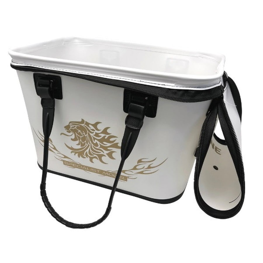 磯での過酷な使用にも耐えられる、極厚EVA を採用したバッカンです。側面をテーパー形状にすることでボディが変形しにくくなっています。ハンドルはソフトタイプを採用し、移動時に束ねられるベルト付。フタ留めボタン、掴みやすい大型ファスナー、底部の滑り止めラバーなど扱いやすい工夫が施されています。