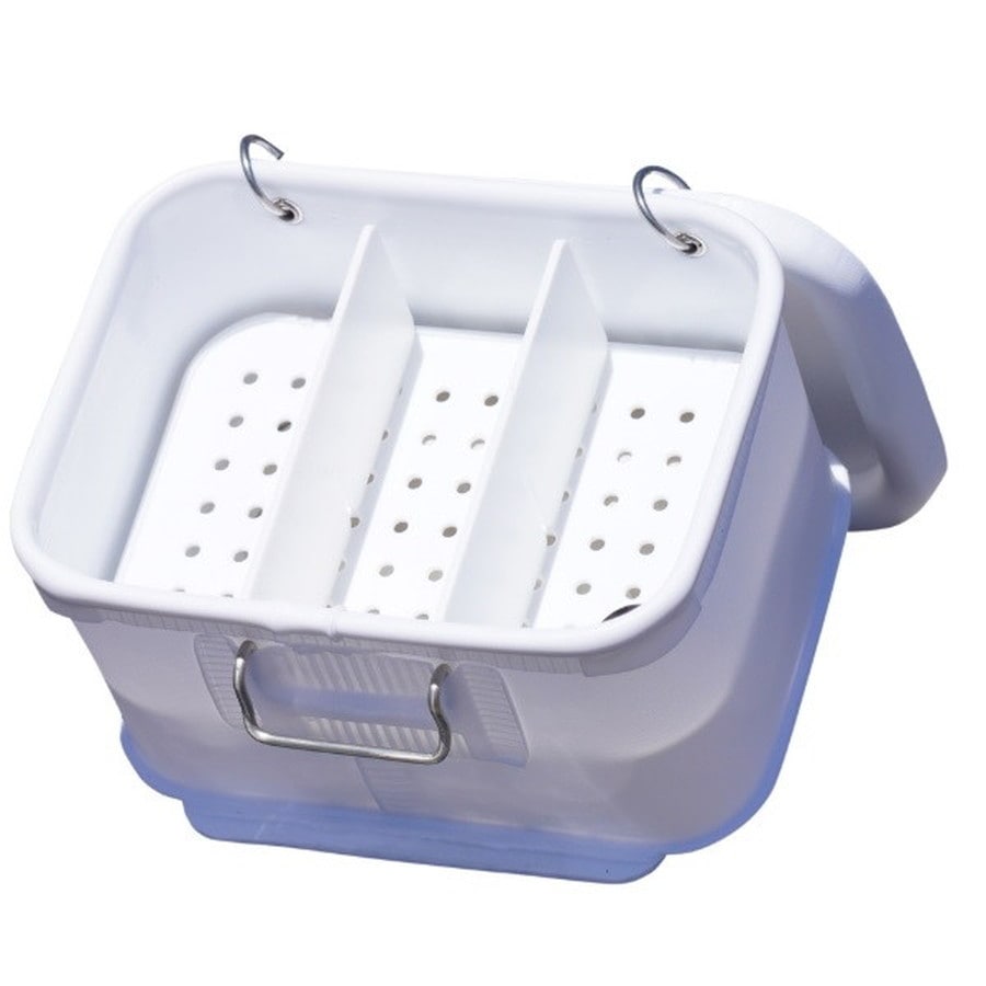 サシエを取り出しやすい前開き構造です。フタ部がトレイになり、使いたい分だけをサシエを小出しできるため、エサ付けが手返しよくスピーディーに行えます。溶けたエサから出た水分が切れるスノコ付。エサの種類に合わせてスペースを変えられる可動式仕切りで、サシエの使い分けができます。固定力のあるノーマルフック仕様。