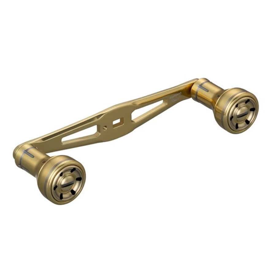 鯛ラバなどに最適なマシンカットアルミノブ搭載のカスタムロングハンドル。200番サイズまでのハンドルタイプBH-1に取り付け可能なダブルハンドル。フィット感にこだわった形状のマシンカットアルミノブはダブルアルマイト仕上げでカスタム感を演出。深場やドテラ流しで負荷の高いシーンでも安定した巻きをサポートする55mmと60mmのロングハンドル仕様となっています。コンクエストシリーズやエンゲツリールに合わせやすいゴールドとグレーの2色をお選びいただけます。