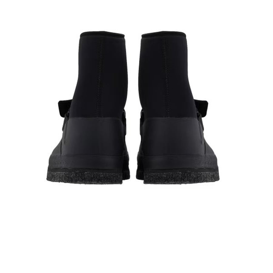 直付けソール鮎タビのスタンダードモデル。踏ん張りが効く中割れタイプで、ソールは石に食い込むピンフェルトを採用。5.0mm厚クロロプレンをベースに、指先部分には硬質ゴムを、そのほかの部分には保護性と運動性を考慮したゴムを貼り付けた鮎タビです。指先での踏ん張入りが効く中割れ、直付ソール、端まで切り込みが入ったカットピンフェルトが相まって、川底の石の感触を足裏で感じ取り、しっかりとしたグリップ力を得ることができます。またデカソールの採用により安定感もアップしています。排水は、砂利やゴミが入りづらい足裏からの排水構造です。