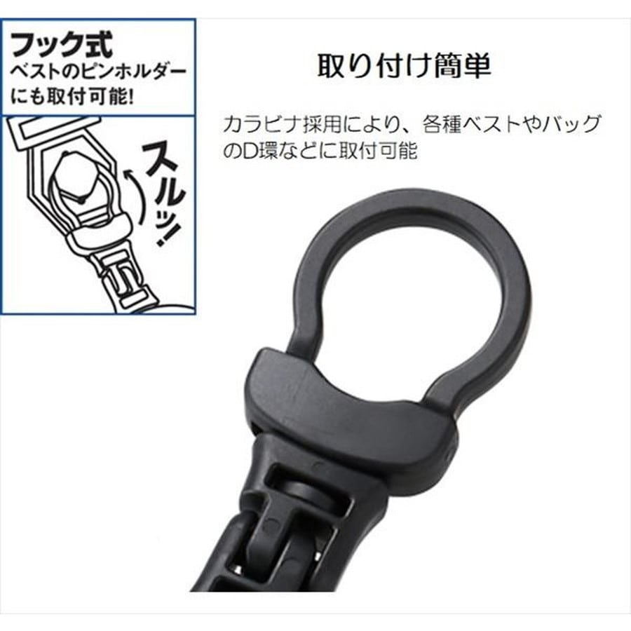 フック式採用で、各種ベスト・バッグに簡単取付。●ワンプッシュで開閉が簡単