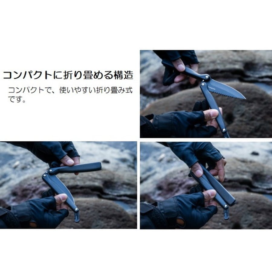 コンパクトで使いやすい折り畳み式のウロコ取り付ナイフ。使いやすい折り畳み式の本格派ウロコ取り付ナイフ。ブレードにはフッ素加工を採用しています。