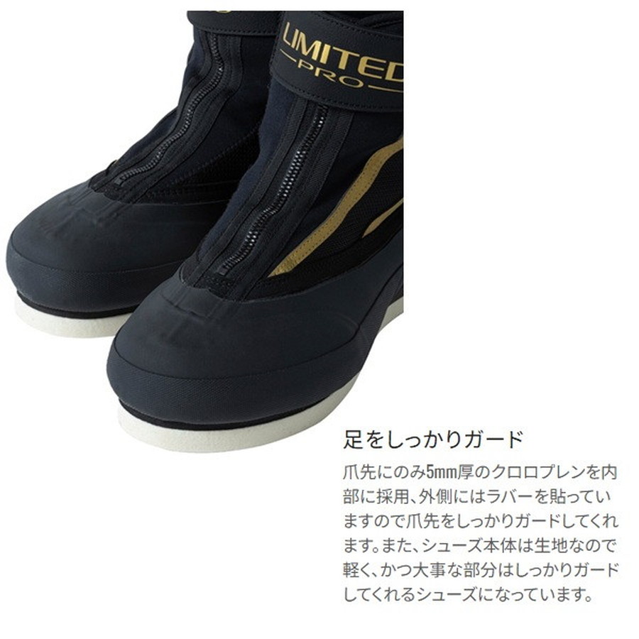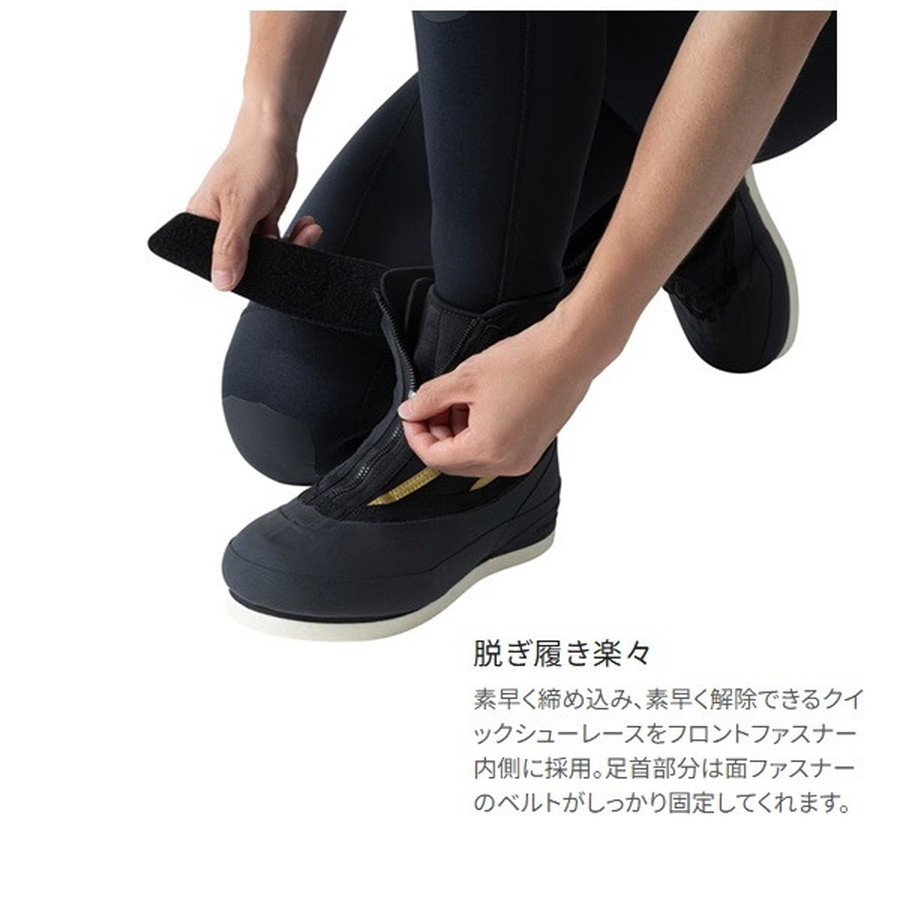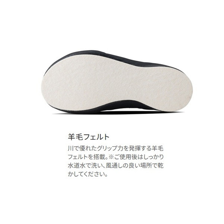 軽さと耐久性を両立。さらには脱ぎ履きのしやすさも兼ね備えた鮎羊毛シューズ。履物は軽くて耐久性があるほうがもちろん良いのですが、それを両立させるのは非常に難しいことです。このシューズは耐久性を出すためにシューズ下部にのみラバーを採用。アッパー部分には生地を採用し、必要な部分のみ補強をしています。中に入る足の保護では爪先に重点をおき、爪先周りにのみ5mm厚のクロロプレンを配置。クイックシューレースとファスナーがセンターにあり、脱ぎ履きも楽々。ソールには川での驚異的なグリップを生み出す羊毛フェルトを採用。
