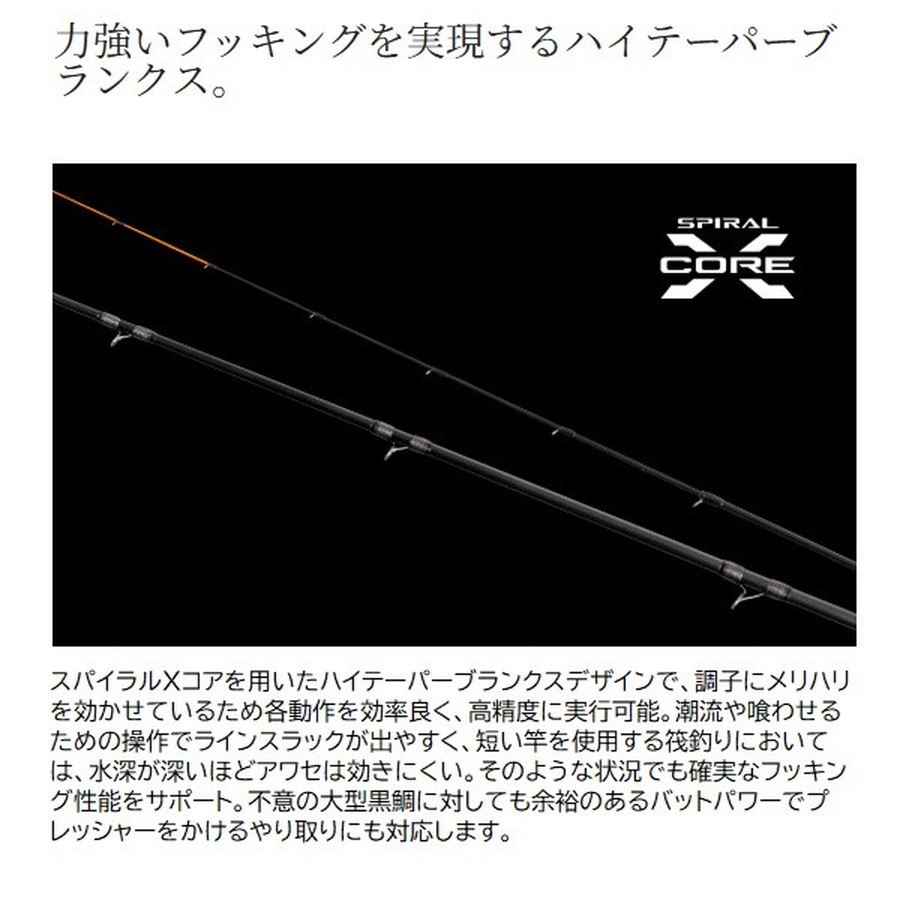 掛けて獲る。新生、硬式先調子。ラインスラックの影響が如実に表れる筏釣りにおいて、「短竿でのフッキング性能」を徹底追求。独自のスパイラルXコア+ハイテーパーブランクスデザインが実現した硬式先調子。不意の大型黒鯛に対しても余裕のあるバットパワーでプレッシャーファイトが可能であるのはもちろん、調子にメリハリを利かせているため、各動作を効率よく、高精度に実行。標準搭載された2本の穂先は状況に応じて使い分けることで、海中の状況、本命の黒鯛のアタリを的確に表現。手元の安定を追求したVホールドパワーグリップはしっかりと握り込めることで、フッキング・ファイト時などの高負荷時にも手元への安定性を付与し、力強くアングラーをサポート。黒鯛の硬い顎を貫き、一閃。力強い釣り味があらたな筏釣りの魅力を提案する。