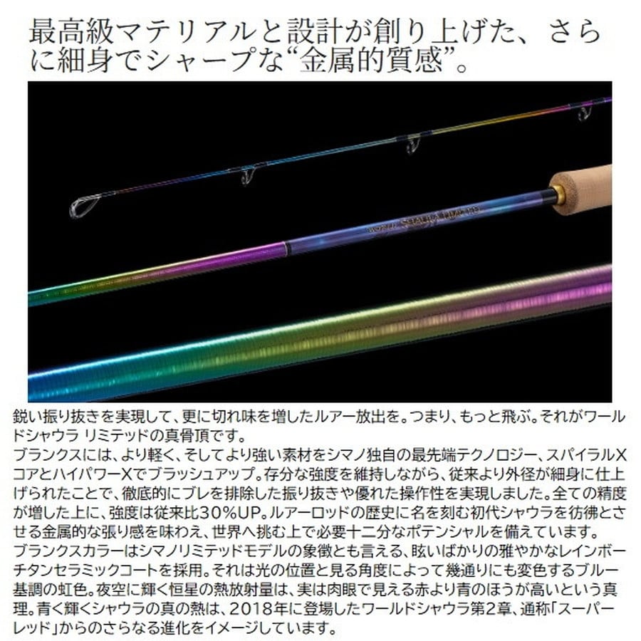 天空の破片を彷彿とさせるSHIMANO最高級モデルとして妥協のない現場主義。ギミックを捨て、単純に最高級素材で細部にまで拘りぬいた、シンプルなこれ以上ない最高級ルアーフィッシングロッドの姿。「使用した刻を表す製品の顔である最高級品質のグリップ」「STELLAと同じ冷間鍛造で生まれたつなぎ目の無いガイド」世界と戦い続けてきたWORLD SHAULAが、現場で見てきた声を妥協なくカタチにしました。■2953R-3・・・THE POWER LIFTING LONG。干潟やサーフでのシーバス、ヒラメ、青物をメインに、地域によっては海アメ、海サクラといったシートラウトやキングサーモンまで対応。3番パワーは、本来ファイト重視の粘りのスペックではあるが、ワールドシャウラリミテッド特有の鋭い反発力により、安定した飛距離と、トゥイッチやジャークなどのテクニカルな操作の快適性を獲得。