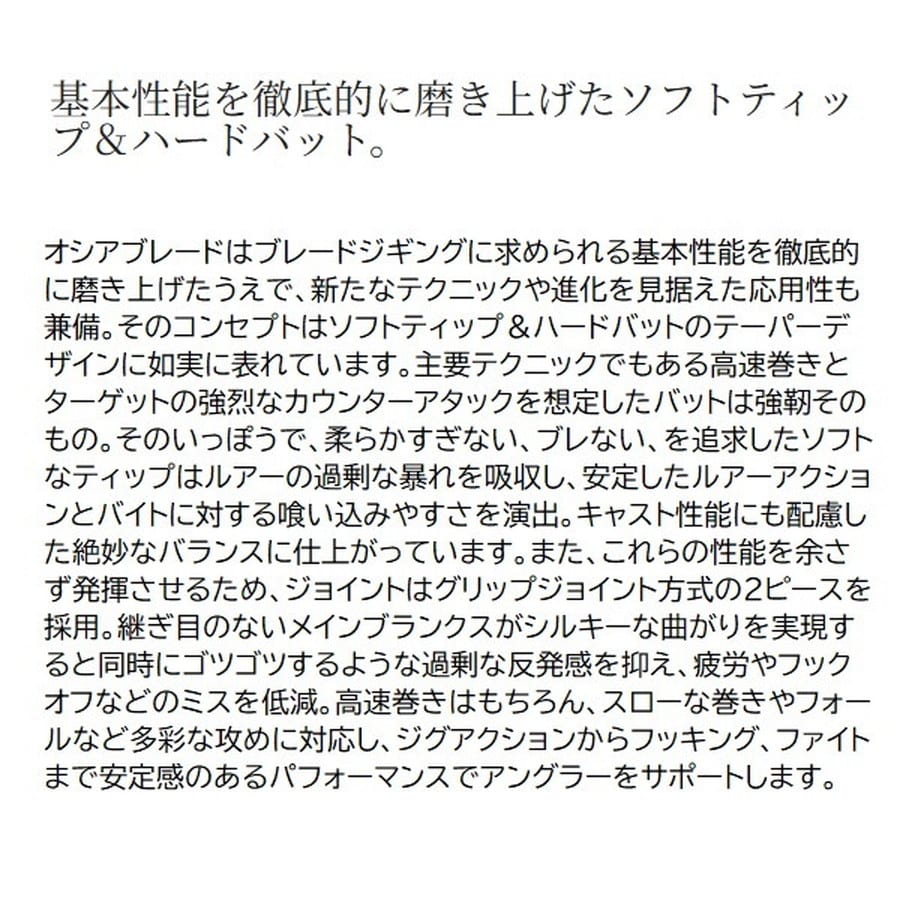 全てはストレスフリーなブレードジギングを堪能するために。基本性能を高レベルで凝縮したフラッグシップモデル。サワラ・青物など多彩なターゲットを相手にエキサイティングな駆け引きが繰り広げられるブレードジギング。全国的に開拓が進み、浸透しつつあるこのゲームでは、専用ロッドを求める声が日に日に高まっている。オシアブレードはそんな声に応えてブレードジギングに求められる基本性能を徹底的に高め、凝縮したスペシャルロッド。■S70-0・・・オフショア、インショアを問わない近海のオールラウンダー。ジグウェイトはバーチカルで20~80g、キャストでMAX60gに対応。水深20~60mまでのバーチカルゲーム、または表層~40mのキャスティングに最適。近海の多種多様なターゲットを狙うシーンに威力を活躍。