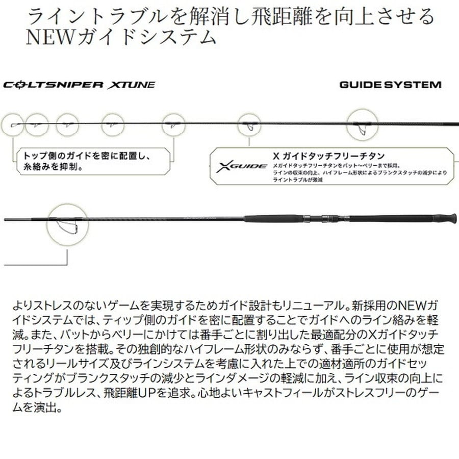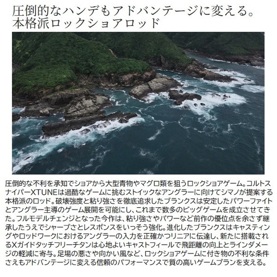 「強靱な粘りとパワーでショアを征する」をテーマに掲げるコルトスナイパーXTUNEがフルモデルチェンジ。新たな設計思想は、常にアングラーが不利な立場に立つことが多いロックショアシーンをサポートするために強さだけではない「シャープさ」を追求。