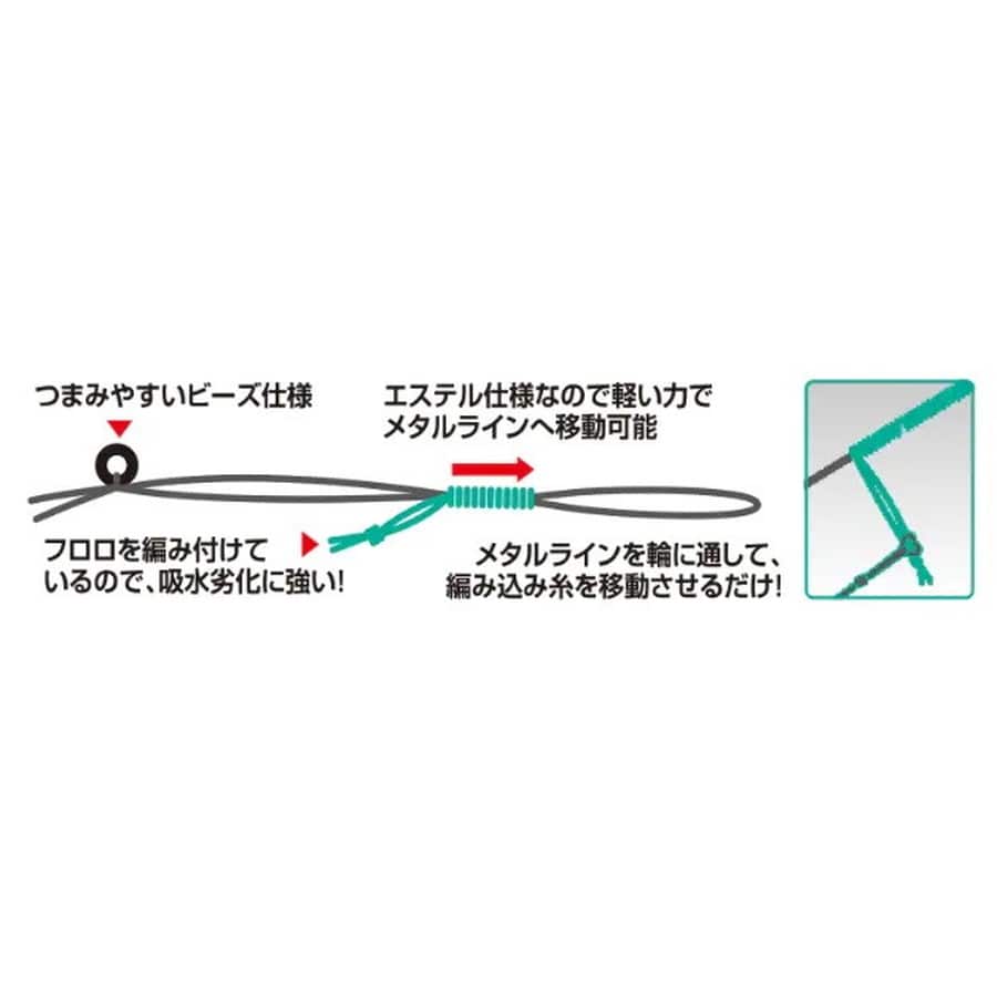 メタルラインとの接続が簡単にできる!メタル系ラインで仕掛けを作る際に活躍するコネクターです。作業時間が短縮できる上、フロロカーボンを使用しているので吸水劣化に強く、強度が持続します。