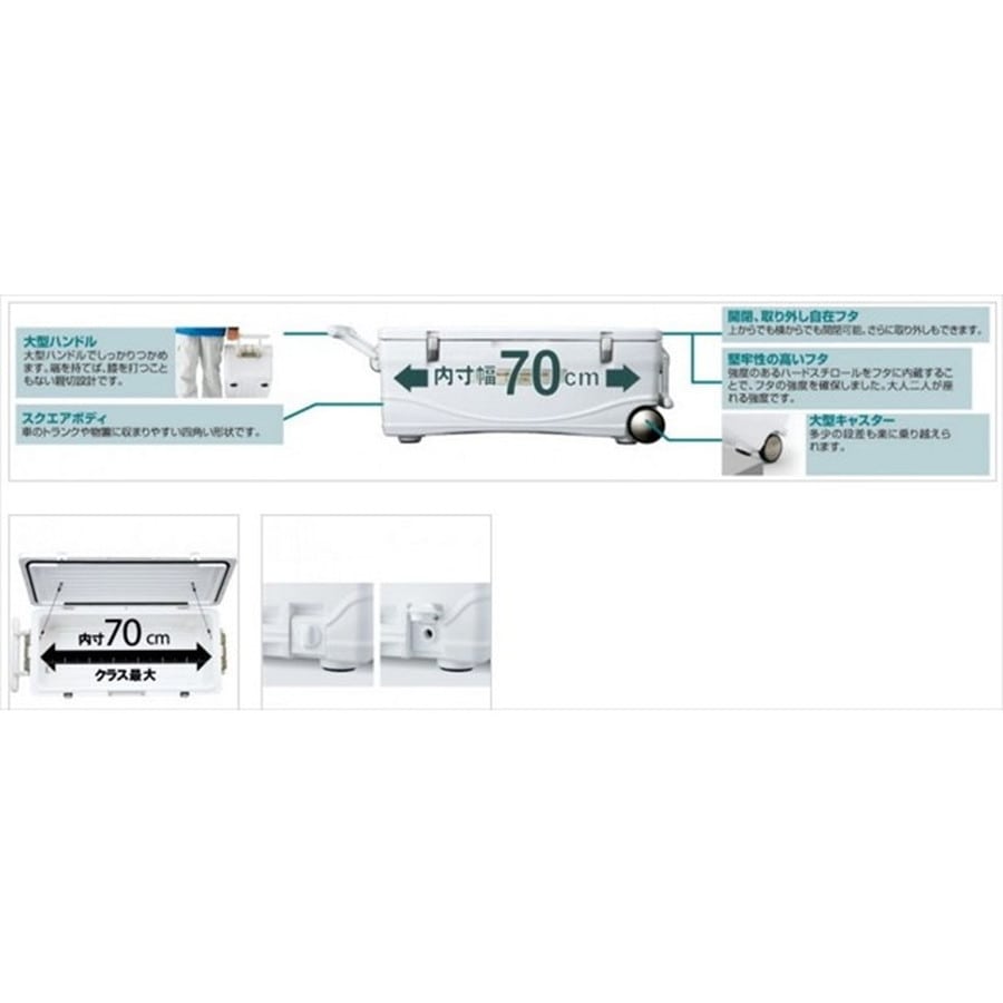 底面真空パネルプラススチロールパネルで余裕の保冷力!70cmの長寸魚も折り曲げずに収納可能。本体内部は独自の設計で、タフ&軽量なボディ。上に乗っても壊れにくい構造です。※掲載している商品の画像は代表画像を表示しています。また実物と色が違って見える場合があります。あらかじめご了承下さい。