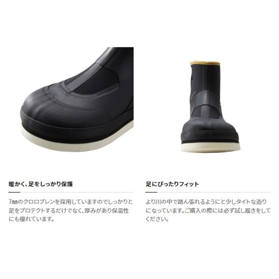 ガードタビに、岩で高いグリップを発揮する羊毛+ピンを装備。強化ゴムが入ったトーガードと7.0mmのクロロプレン、そして内側のパイル状ジャージが優れた保護性を発揮して足をしっかとガード。踏ん張りが効く中割れタイプで、羊毛ピンフェルトがしっかりとサポートします。内側ファスナーが付いているので脱ぎ履きも簡単。★カラー:ブラック サイズ:S(24.0-24.5cm) タイプ:(中割) ソール:羊毛ピンフェルト 厚み(mm厚):7 ※実物と色が違って見える場合があります。あらかじめご了承下さい。