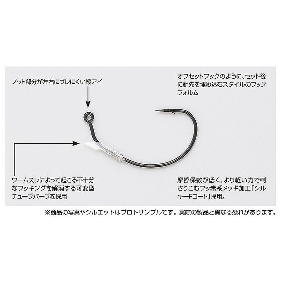 針先埋め込み派!ウィードレスネコフック。効果的なアクションとタックルを選ばない扱いやすさで、多くのアングラーが愛用するライトリグの定番「ネコリグ」。この“釣れるリグ”にさらにスナッグレス性を付加すべく、オフセットセッティングにこだわってフック形状を一から開発。可変チューブバーブを採用することでワームズレを防ぎつつ、通常のオフセットフックのような使用感の良さを実現。「ネコリグ」の可能性を極限まで引き出すスナッグレスネコ専用フックです。※ピックアップ時の回転などによる糸ヨレが気になる場合は付属のスイベルを装着して下さい。付属分で足りない場合は、「SN-15 カシメルスイベル」をお買い求めください。
