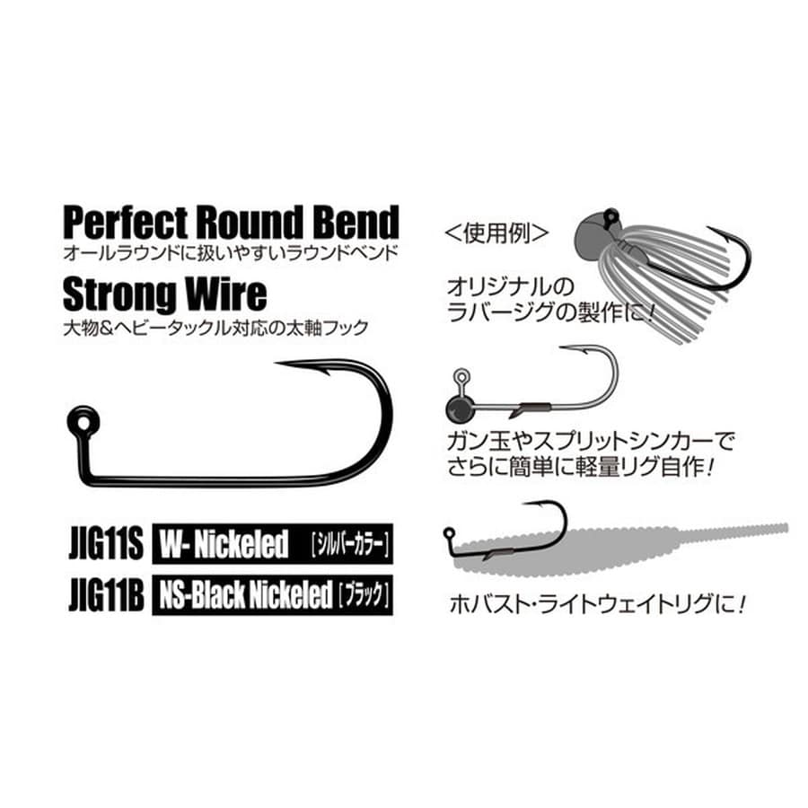 ホバスト・バマストでのパワーファイトに!幅広く使える太軸ジグフック。オリジナルジグヘッドの作成はもちろん、極小ウェイトを使用したフィネスメソッド(ホバスト・バマスト等)にも最適なジグフックです。ソルトウォーターでの使用を想定した太軸設計により強靭なパワーを有し、ベイトタックルでの使用にも高いパフォーマンスを発揮。●ストロングワイヤー採用。●あらゆるジグにマッチし、ワームがセットしやすいラウンドベントタイプ。●シーンに合わせて使える、シルバー&ブラックの2カラーラインナップ。
