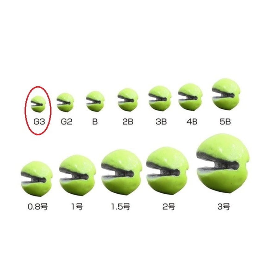 便利な遊動ガン玉に視認性を追加。●遊動ガン玉に蛍光塗装を施して視認性を追加。視認性のある遊動ガン玉です。水中でも良く見えるイエロー塗装を採用し、水中での仕掛けの落ちが一目瞭然です。●ゴム製被膜で衝撃が加わっても塗装が剥げにくい。イエローの被膜にはゴム素材を採用。通常の塗装では他物との接触で色剥げが生じますが、柔軟な素材で塗装することにより傷を軽減します。●割面は非塗装なので割れ目がわかりやすい。遊動ガン玉の外周部のみを塗装しています。ラインを挟み込む割り部の内側は非塗装となっているため、手に取った際に素早くラインを挟み込む位置が把握可能です。