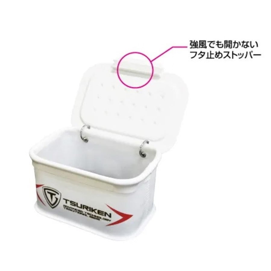 強風時でも上蓋が開かない!フタ止めストッパー装備。釣研製バッカンに取り付ければそのままバッカンが閉じられるオリジナルフック装備