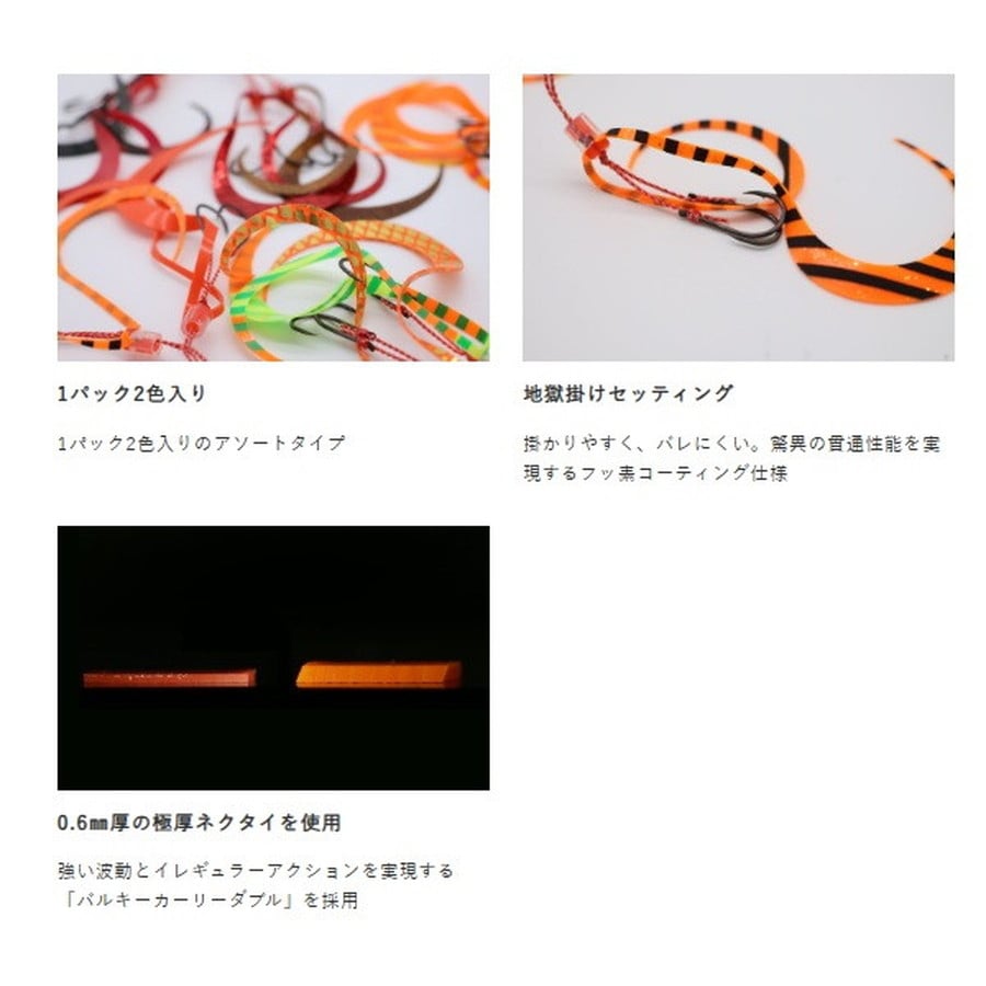 地獄掛けフック+実績の高い極厚ネクタイのアソートセット。異なる形状の極厚カーリーが強い波動とイレギュラーアクションを実現。