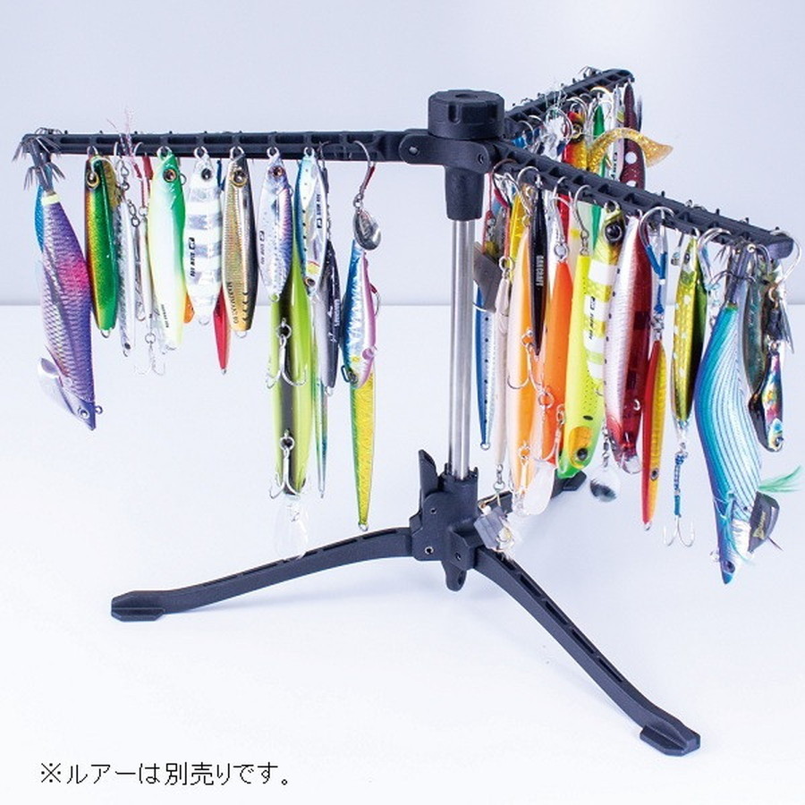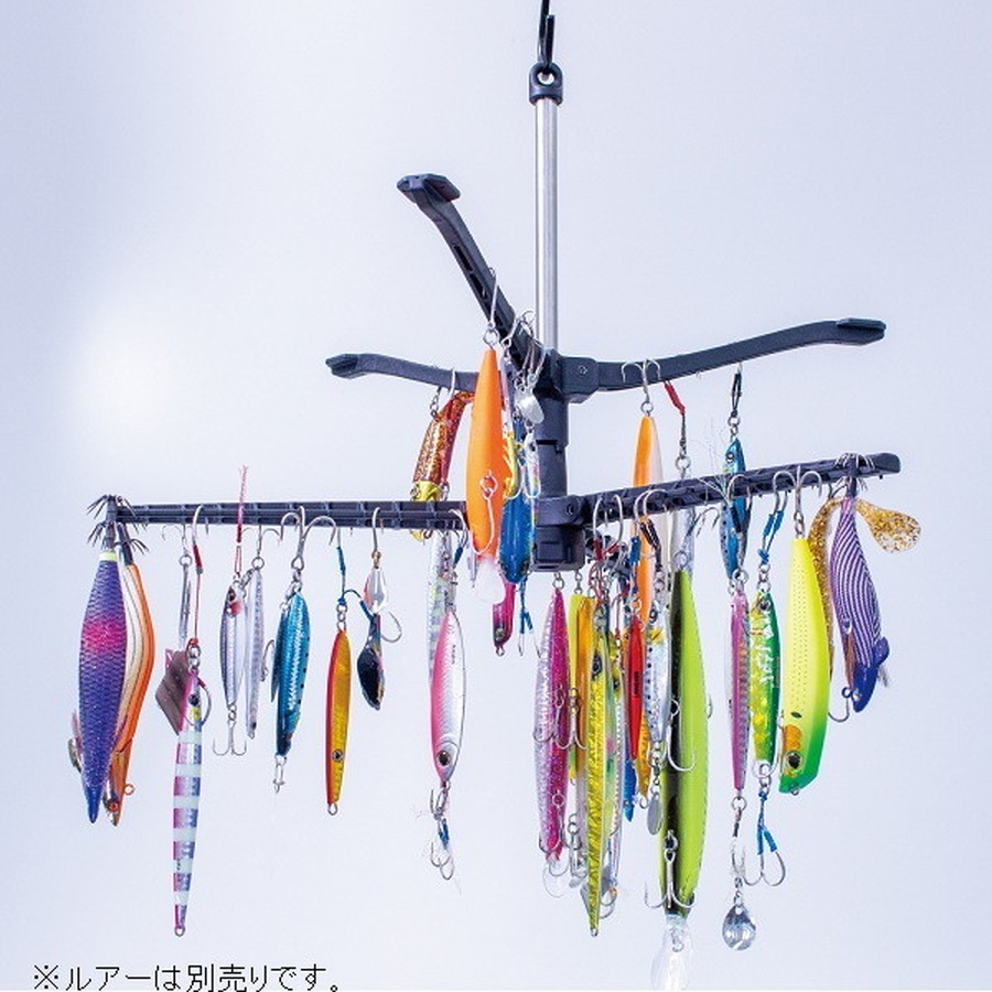 折りたたんでコンパクトに収納。広げれば最大60個のルアーを掛けられる大容量ルアーハンガーとして使用可能。洗浄後のルアーの乾燥を効率的にサポートします。