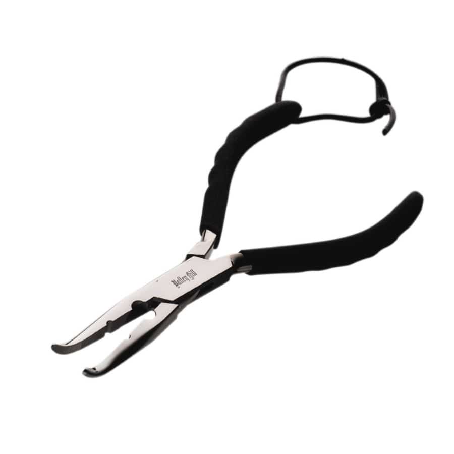 ブラックバス、シーバス、ヒラメ、マゴチなどのゲームに好適なサイズ。 フックを外しやすいカーブポイント採用。皮ヒモ付。 カーブ 175mm