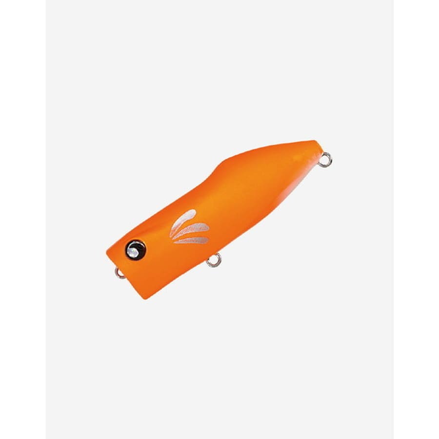 [誘う・ネチる・泳ぐ]多彩な次の一手で食わせる。チヌ・シーバスに主眼を置いて開発。小場所やサイト等「興味は持つけど喰わせるまで至らない」スレた個体や壁チヌのように極めて追う距離が短い個体に対して有効な1本。3アクションを組み合わせる事でその日のストライクゾーンを幅広く探す事が可能。[誘う]移動距離を抑え直下にダイブするような低音のポッピング。ストップ感が強く、まとった泡や水押しの中にルアーが浮上してくる挙動。[ネチる]ターンに近い移動距離を抑えた細かな首振り。誘った後の追いが悪い場合やストラクチャー際から離さずに誘い続ける場合に有効。[泳ぐ]スローからファストまで水面下5cmをフラフラと泳ぐウォブリングアクション。ラインの揺れを嫌うスレたチヌやシーバスにおけるイナッコパターン等に。
