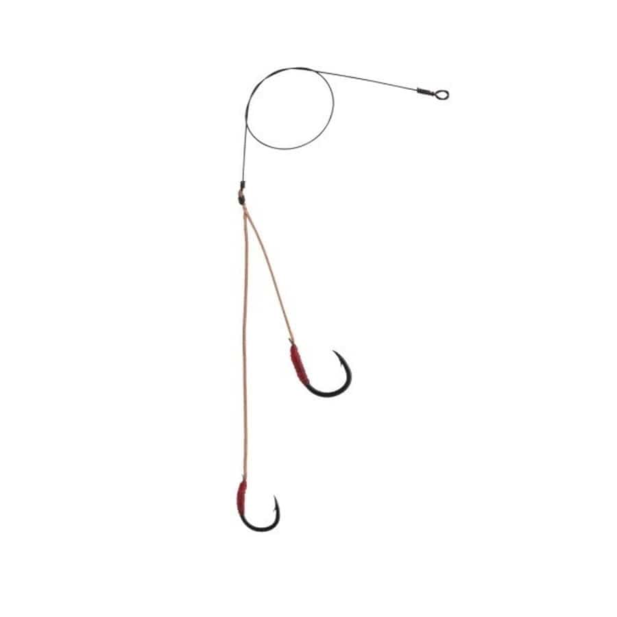 関西石鯛釣りの第一人者、木村俊一氏が、1本1本ていねいに作り上げた逸品。(ガマカツ等メーカー鈎使用)短い本鈎をウニの芯に掛け、長い方のクワセ鈎に貝等のエサをウニの中に入れると抜群の喰い込みを見せます。