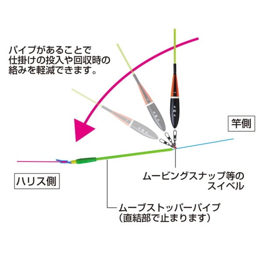 道糸へノーダメージ!仕掛け絡みも防止!ウキクッションの役割があるムーブストッパーにパイプが合体したことで、カゴ釣り・棒ウキ・環付きウキを使用した釣りで仕掛けの絡み軽減に。※サイズの使い分けはウキの全長に合わせてご使用ください。