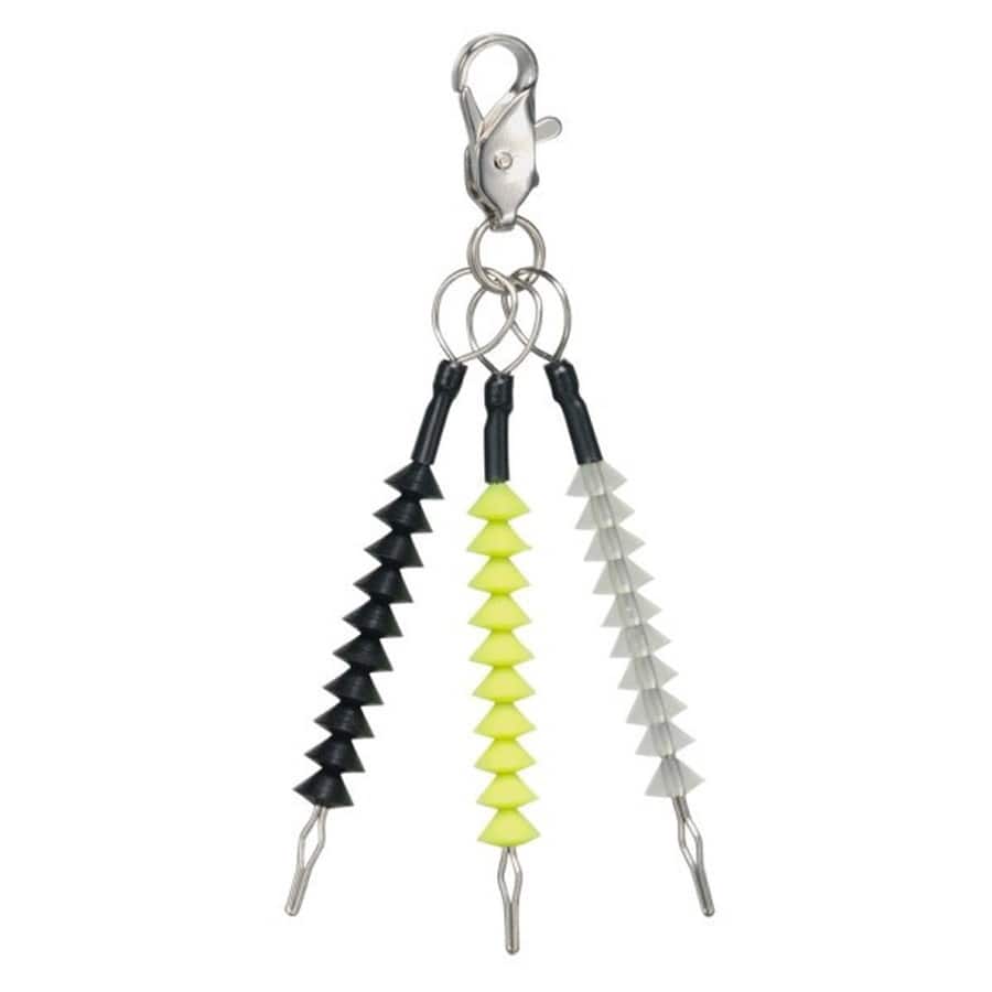 松田ウキの下部にフィットするそろばん型のクッションゴム。1回使用でウキ本体とラインを保護します。★入数:ブラック・クリアー・イエロー 各10個入り
