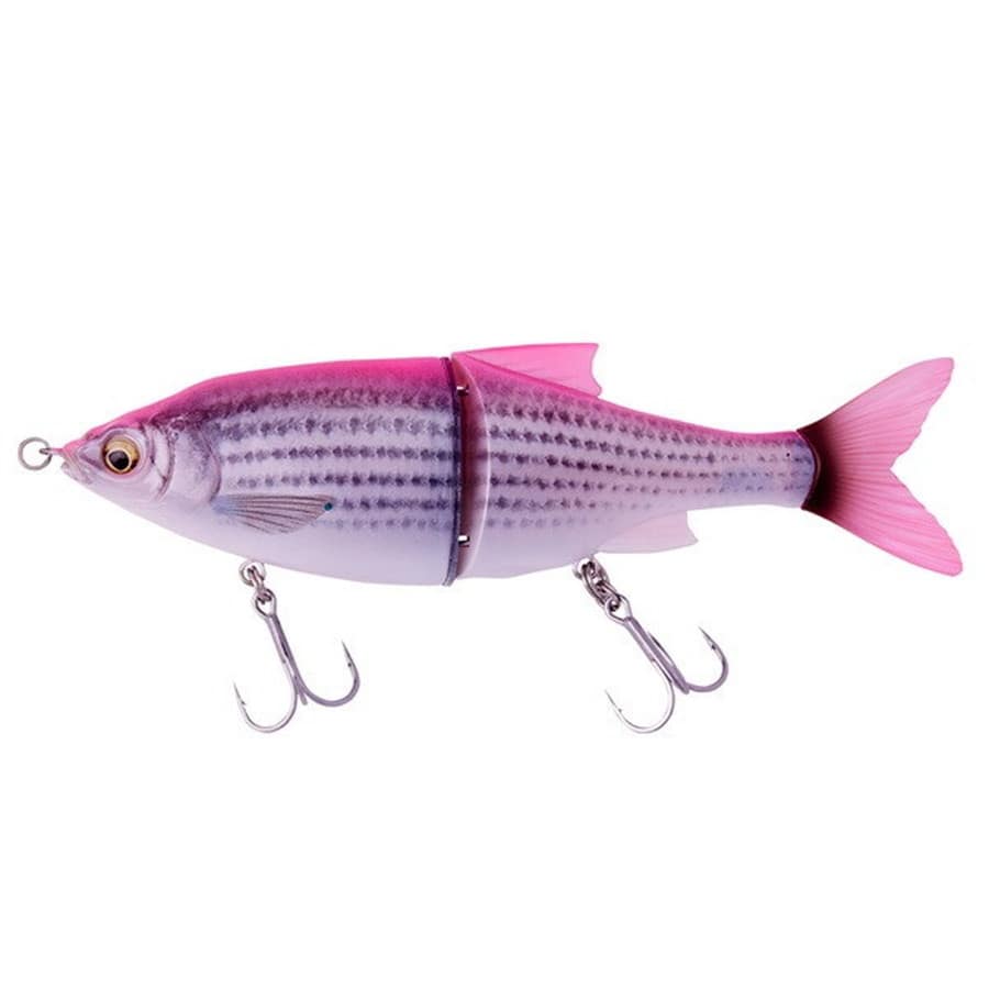 本物の魚をスキャンしたリアルシェイプグライドベイト。ジャークやトゥイッチ、緩急をつけたリーリングによる左右への大きなグライドアクションが特長。ただ巻きではS字の軌道を描きながらスイミング。★全長:230mm
