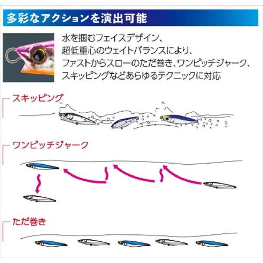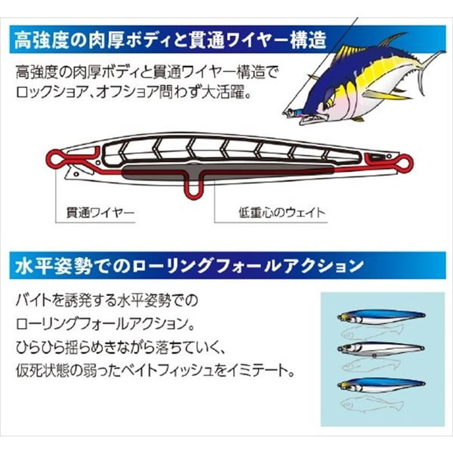 大物狙いでラインを太くすると、ラインが潮流の影響を受けて思うような操作ができない。そのような状況を打開するのがモンスターショット140mm/100g ヘビーウェイトゆえに潮流に流され難く沈下速度の速い為、水深があるエリアでもスピーディーに送り込むことが可能。(沈下速度:60cm/秒)★タイプ:シンキング サイズ(mm):140 重量(g):100 リング:#6(POWER) フック:#1/0 飛距離:100mOver 深度:ALL RANGE
