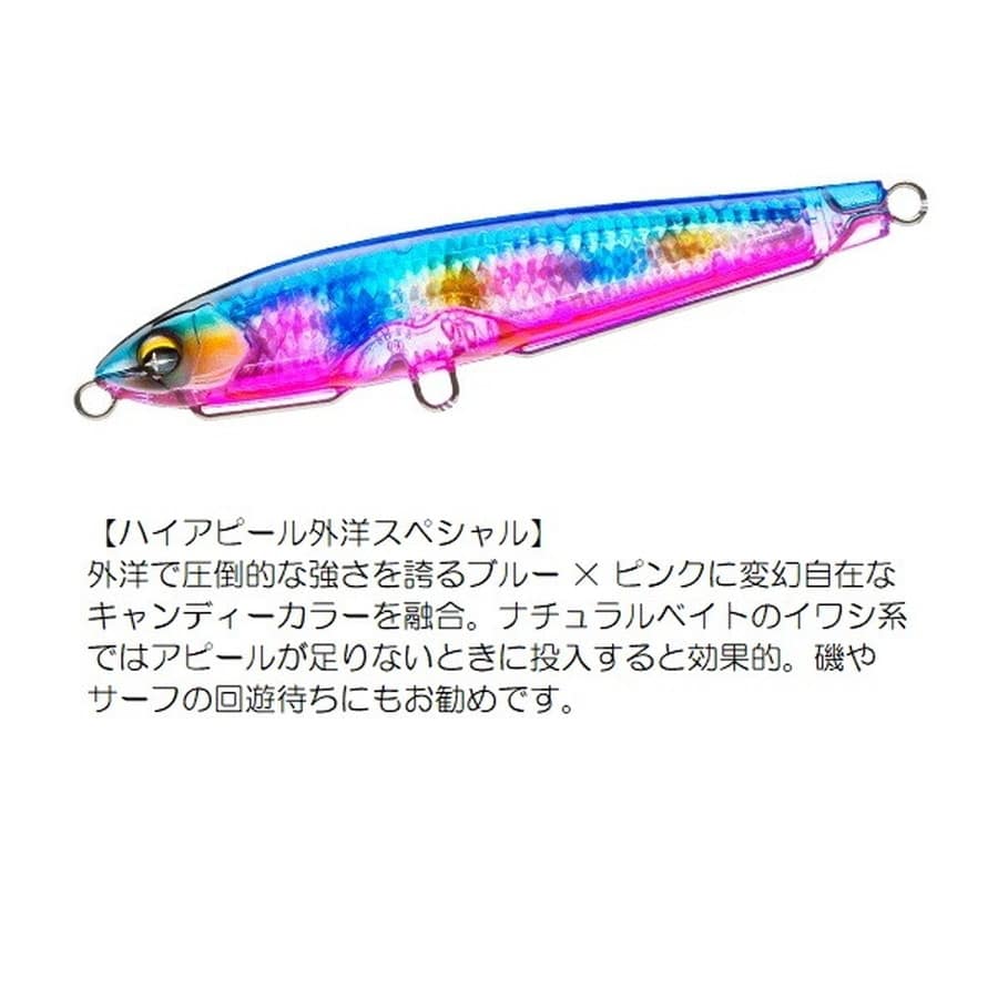 爆発的飛距離+レンズの閃光!(International Patent)遥か彼方のターゲットを狙い撃つ!!半永久的に輝くリアルレンズを搭載。遠浅エリアや水面直下狙いに最適なシンキングペンシル!●薄めのボディ形状で風を切り裂く抜群の遠投性能●浮き上がりが速い設定により、遠浅エリアや水面直下をスローでじっくり狙える●ラインを引っ張りながらバックスライドローリングフォールするので着底が分かり易い