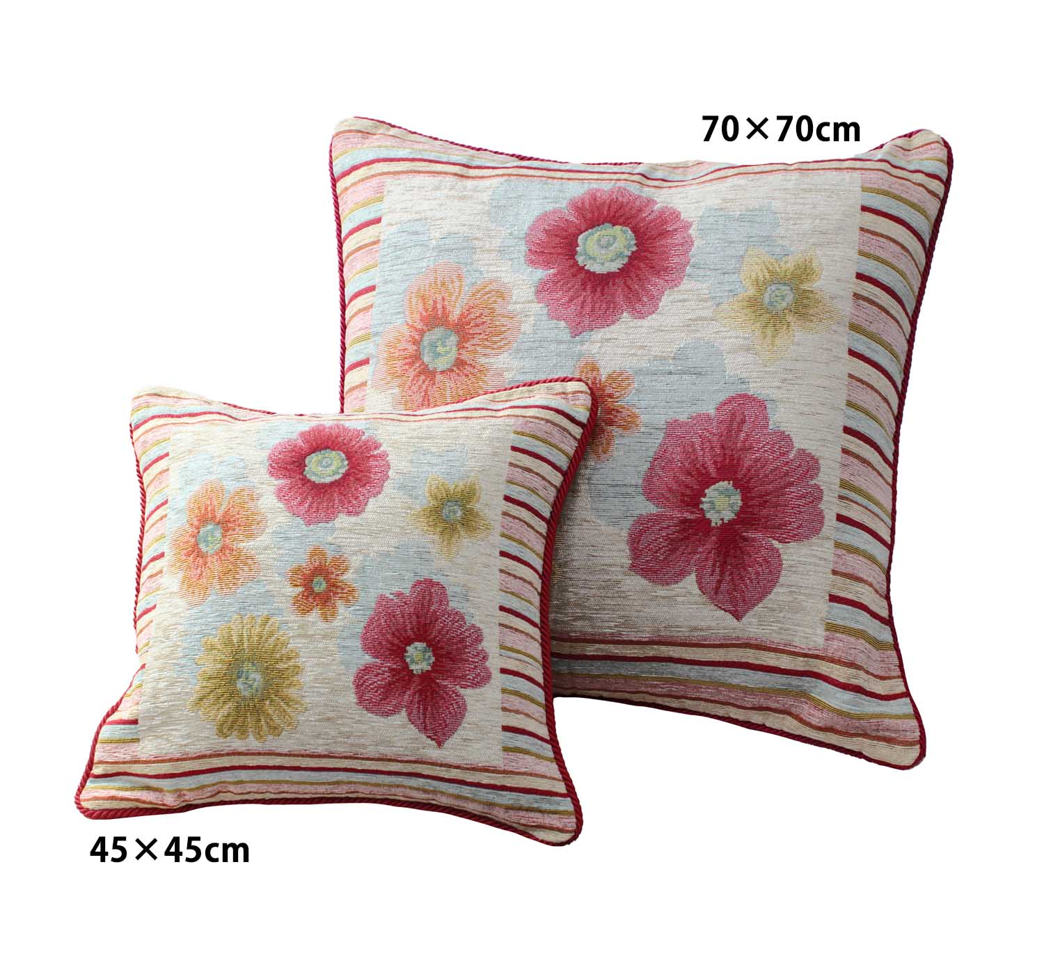 周りには光沢のあるロープを縁取っていてお気に入りの空間がぱっと華やぐ、愛らしいクッションカバーです。
