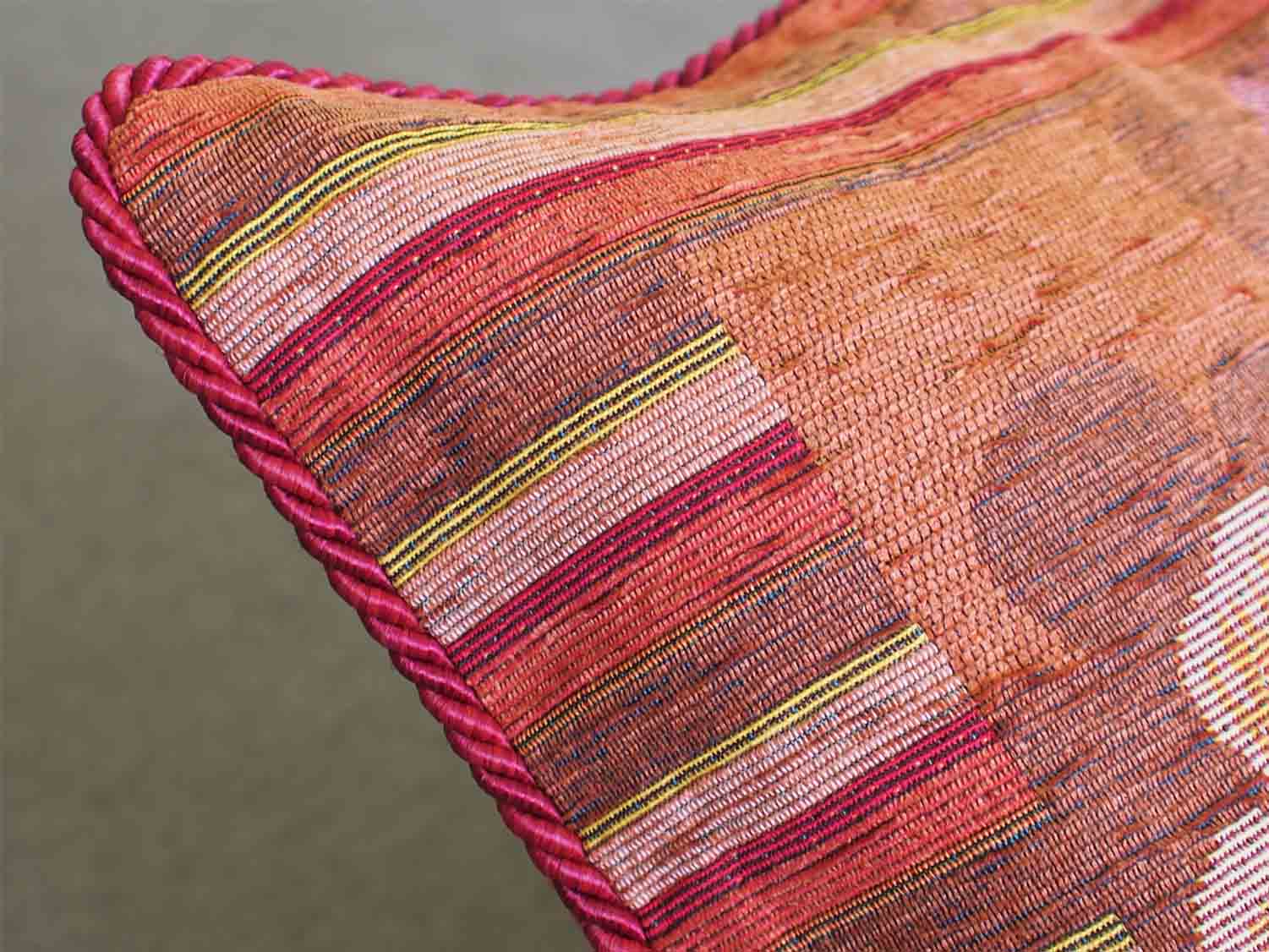 周りには光沢のあるロープを縁取っていてお気に入りの空間がぱっと華やぐ、愛らしいクッションカバーです。