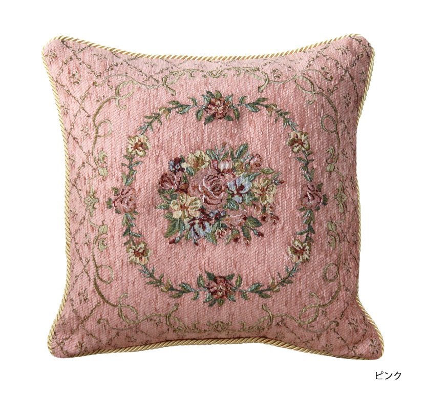 ジャカード織のブーケ柄クッションカバー