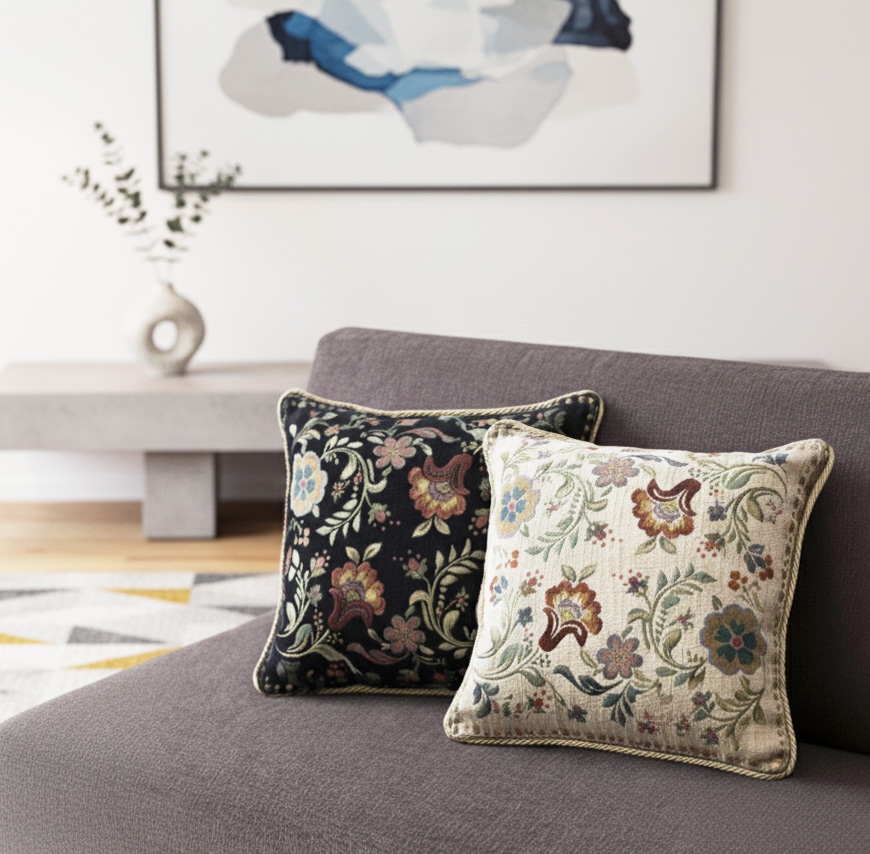 織りで描かれたクラシックなデザインがお部屋を優美に演出。