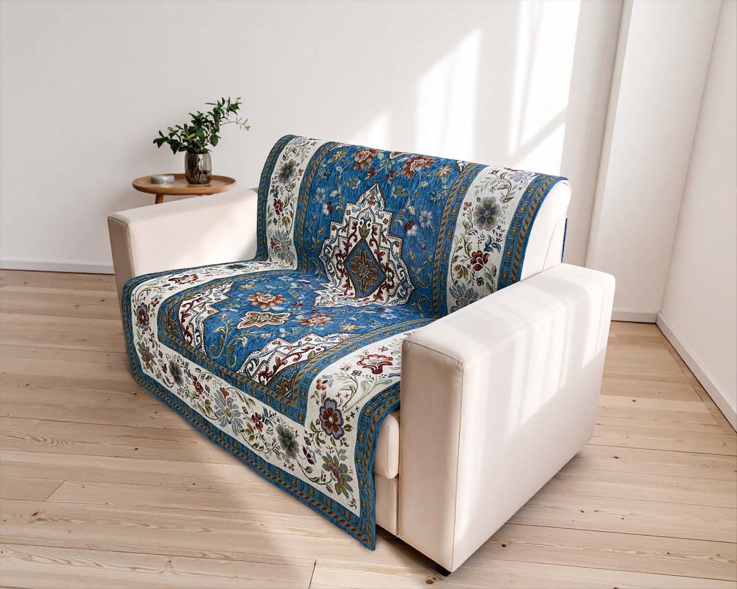 イタリア製中掛けカバー イスタ 2人掛 105×175cm(ターコイズ)