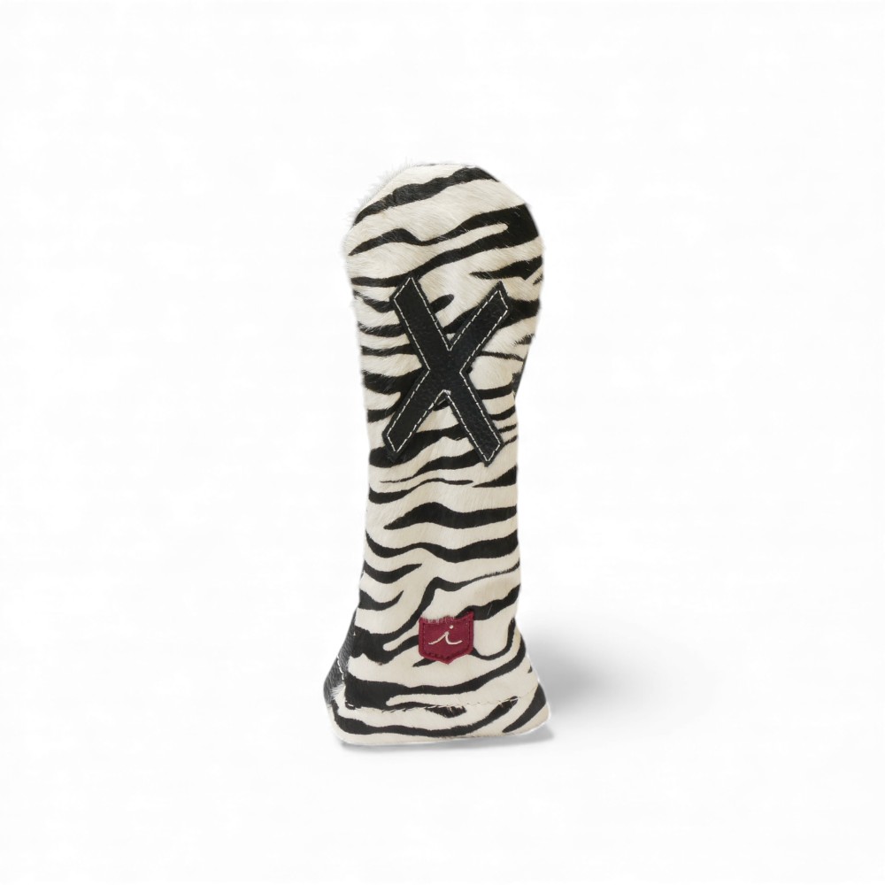 ゼブラ柄のハラコ調牛革を使用した、ワイルドで個性的なヘッドカバー