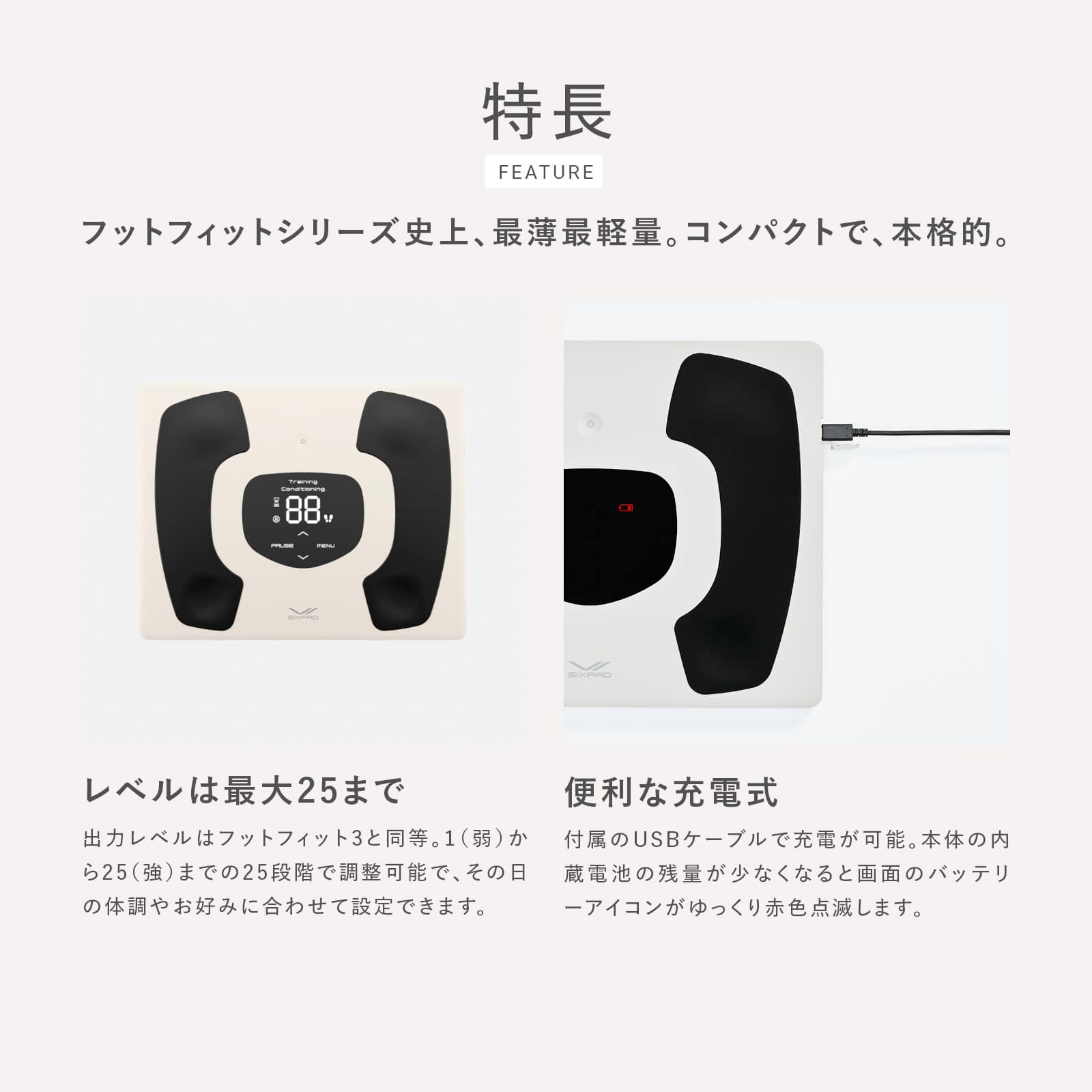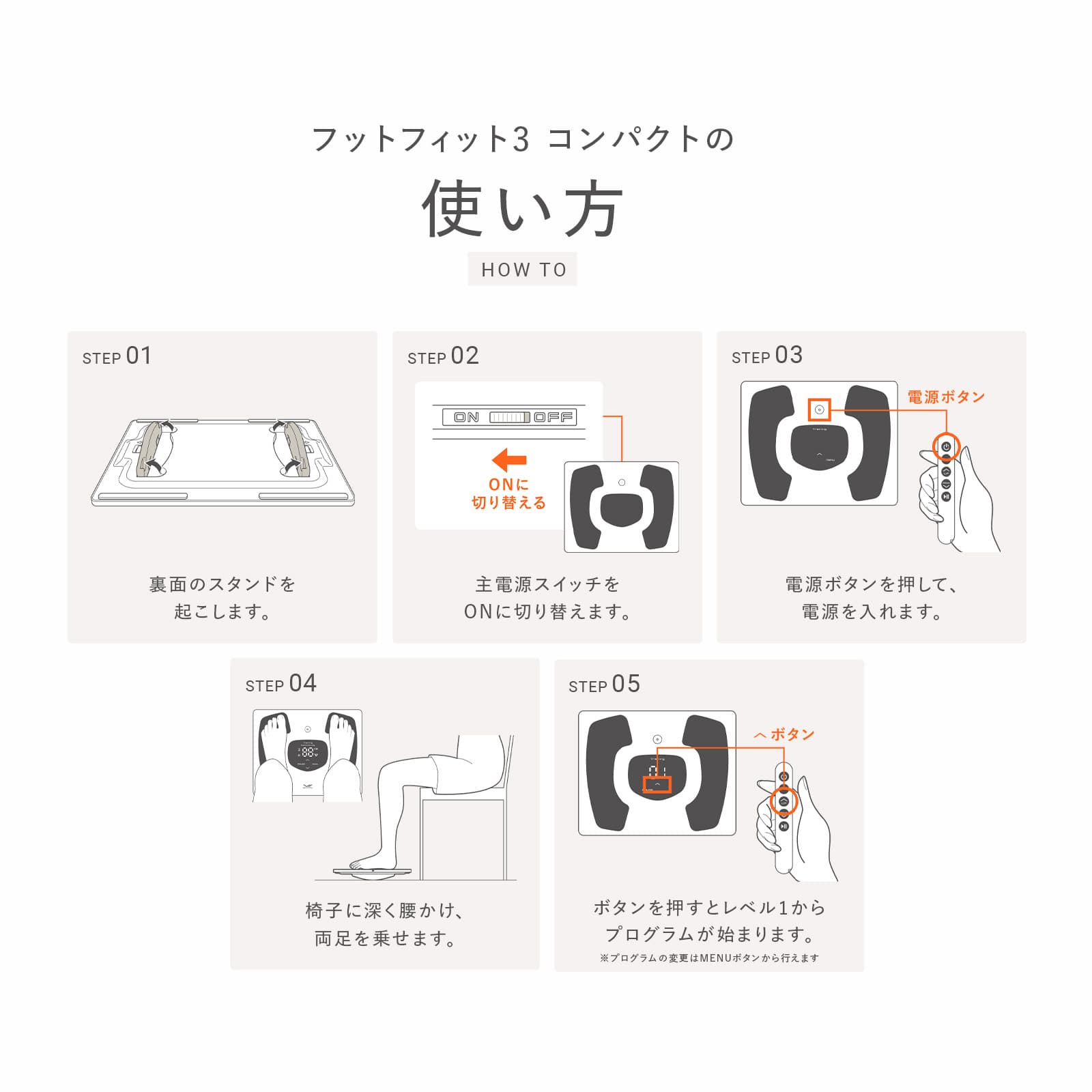 - ■同梱品:フットフィット3 コンパクト本体1台、リモコン1台、専用充電用USBケーブル1本