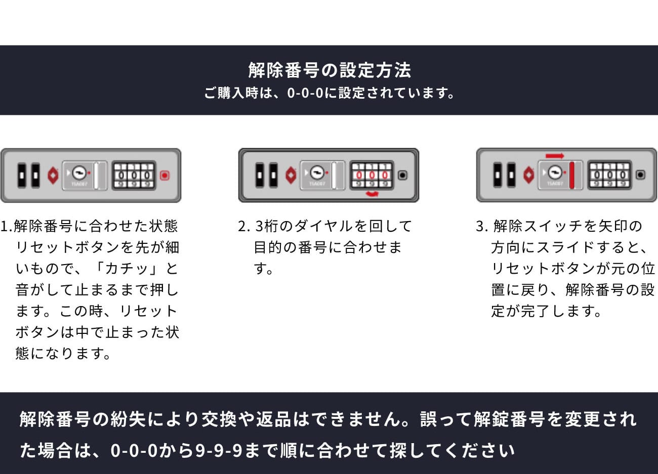 ■内容物の紛失を防ぐ内蔵型TSAロックを装備突起が少なく衝撃に強い内蔵型TSAロックで移動や積載時の故障や破損率が少なく ![]()
