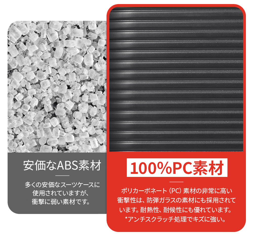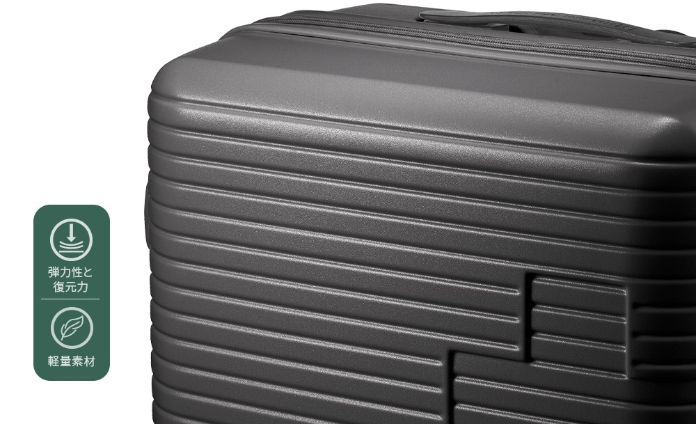 ■あなたの旅をカジュアルにサポートする心強いパートナーボディを100%ポリカーボネートにすることにより、より衝撃に強く耐久性がアップしました。アンチスクラッチ処理で傷がつきにくい点も特長です。