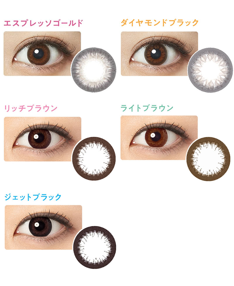 | 着色直径 | ジェットブラック、リッチブラウン、ライトブラウン:12.6mm エスプレッソゴールド、ダイヤモンドブラック:13.2mm | ||