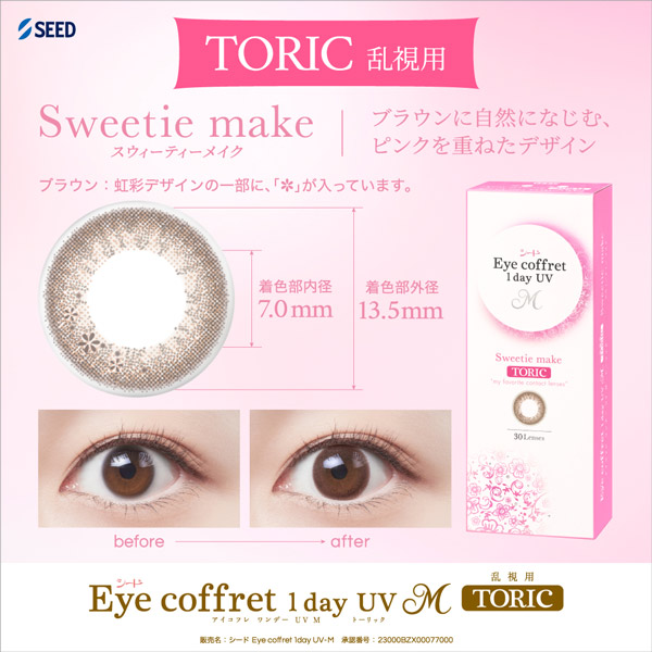 | 製品名 | アイコフレワンデーUV M トーリック Eye coffret 1day UV M Toric |