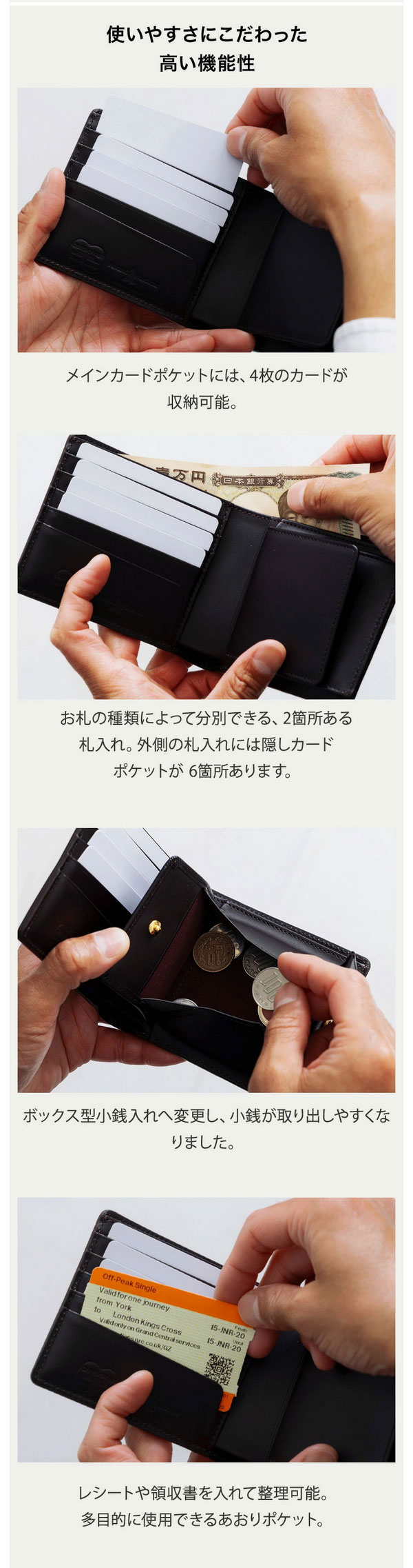 仕様 カードポケット×10、あおりポケット×1、オープンポケット×3、 札入れ×2、小銭入れ×1