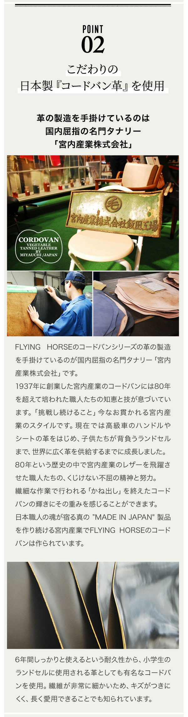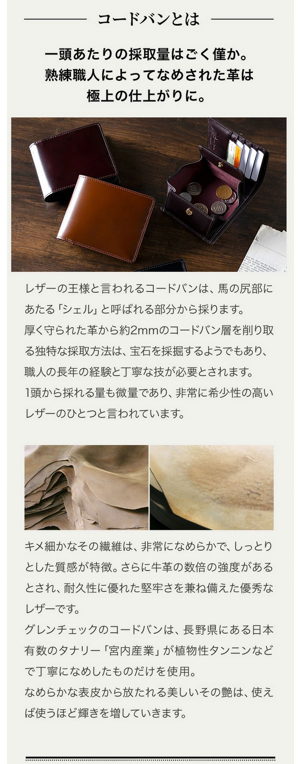 素材 表地:馬革(日本製コードバン)、裏地:牛革(日本製)、レーヨン