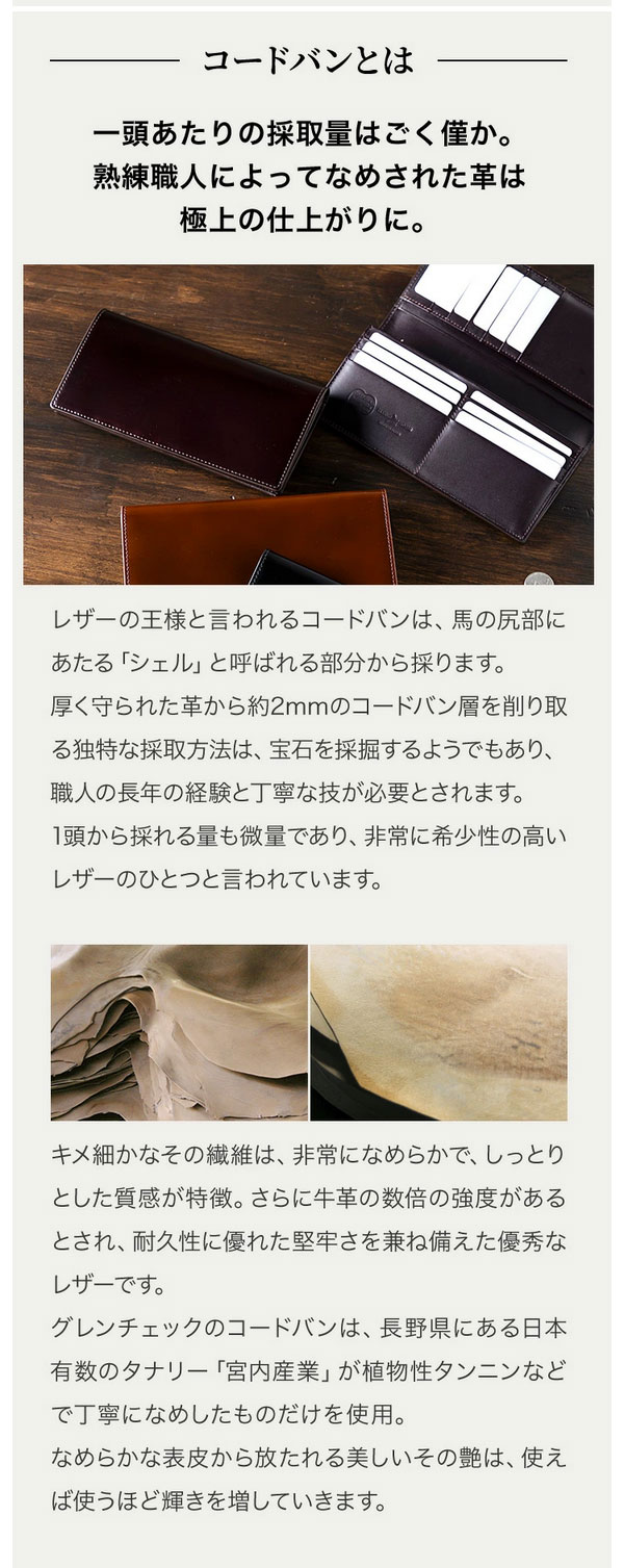素材 表地:馬革(日本製コードバン) 裏地:牛革、レーヨン