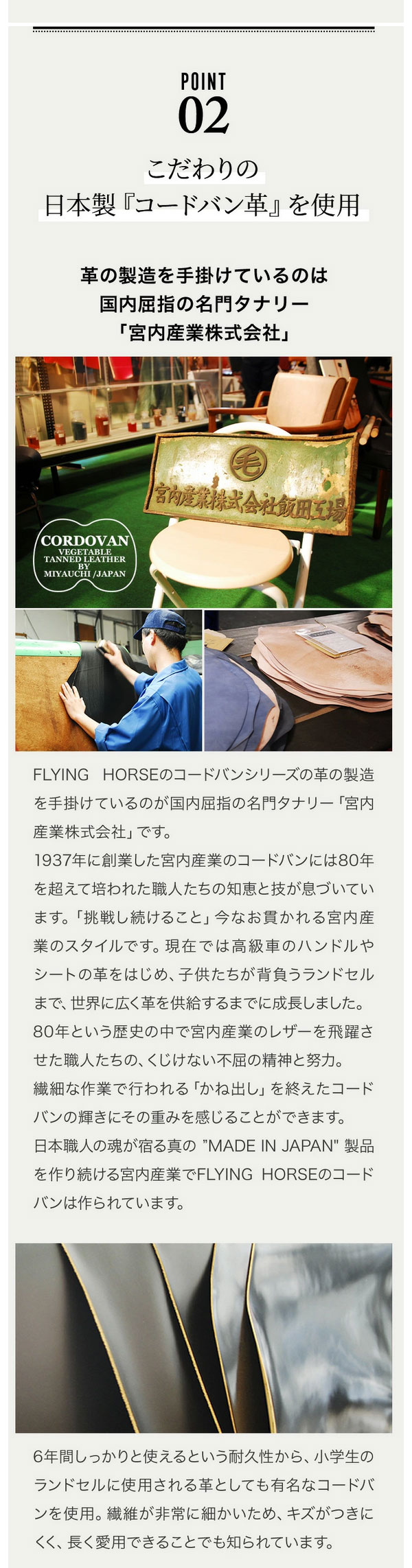 素材 表地:馬革(日本製コードバン) 裏地:牛革、レーヨン