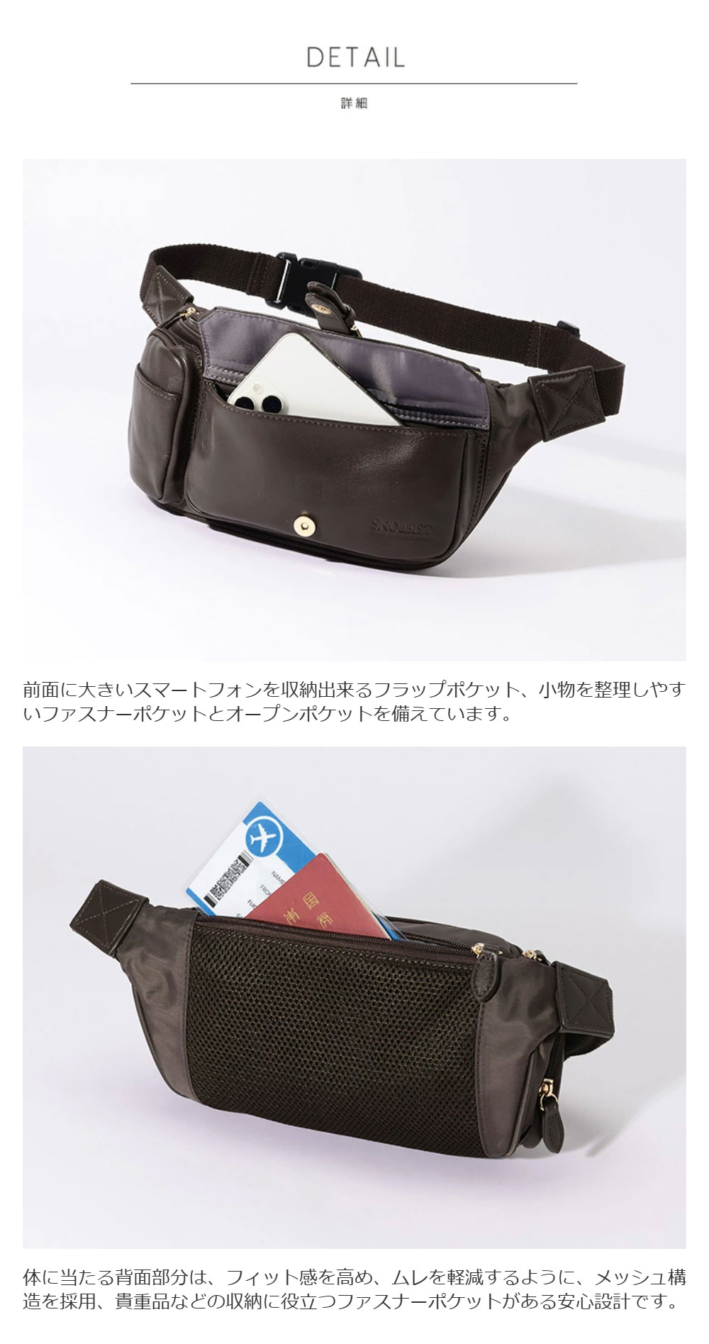 ![[SNOBBIST]シープスキン & 撥水ナイロンコンビウエストバッグ ボディバッグ ダークブラウン ダークブラウン](/img/0107/goods/D2/0107-22550001.jpg)