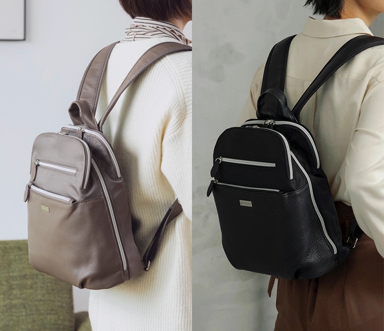 素材 地:ナイロン(撥水加工)・牛革、裏地:ポリエステル