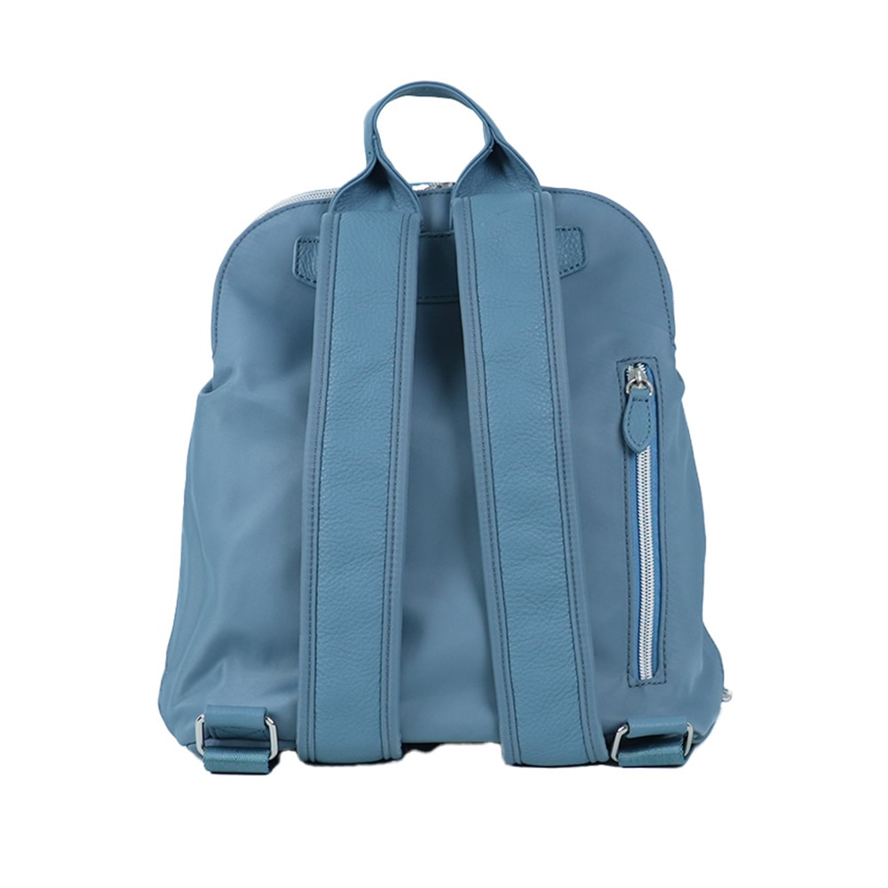 内側には、発色の良いブルーのライニング生地を使用しているため、中身が見やすく取り出しやすい仕様です。コンパクトな設計ながらバッグ自体が自立する構造のため、容易に取り出しが可能です。