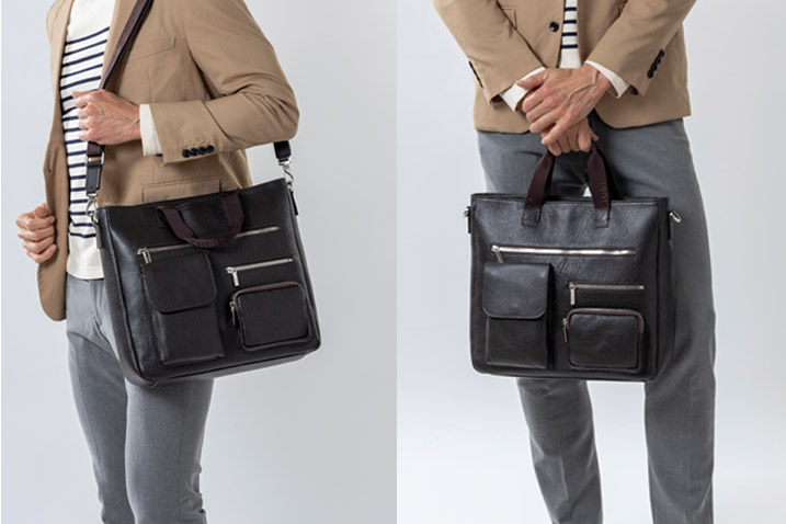 持ち手と着脱可能なショルダーベルトが付いているため、用途に応じてご使用頂けます。