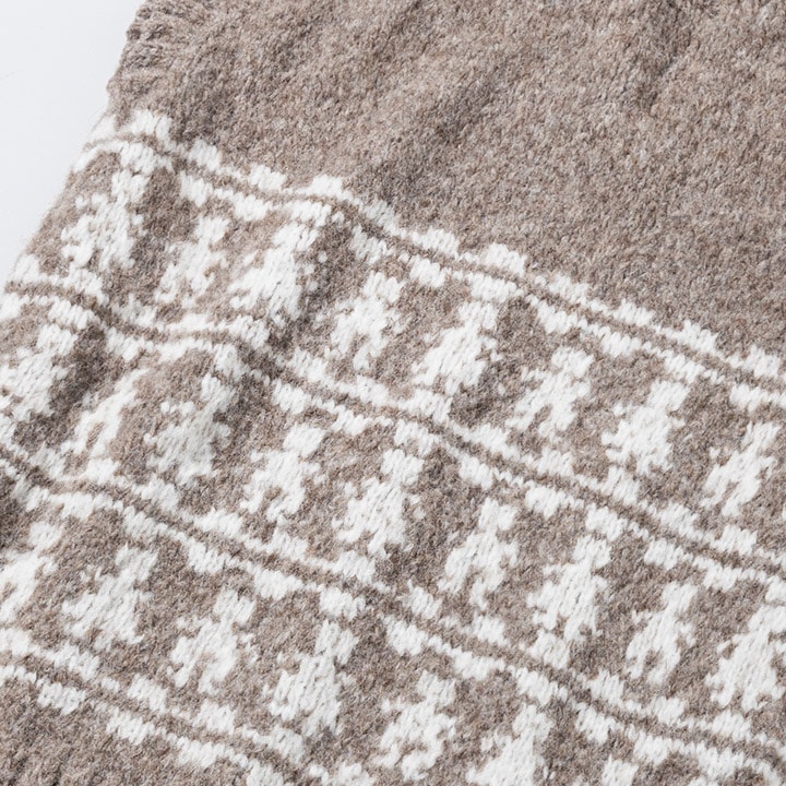 Wara Wara(ワラワラ)とは、ペルーとボリビアの公用語の一つであるアイマラ語で「リトル・スター」、小さな星という意味。アンデス地方のまさにこのニットを編んでいる人たちが毎夜見上げる美しい星々。これを思わせるブランド名です。ペルーにある標高3,800mのチチカカ湖のほとりの街、プーノ。Wara Waraブランドでは、この街と近辺の集落にいる編み子とウールやアルパカを用いたニットアイテムを長く作ってきています。週に一度、プーノ事務所の受け取り窓口には大切に編んだニットを手にした編み子が列を成し、検品を経て合格となれば賃金と交換、不合格となれば編み直しです。厳しい品質管理で生まれたアイテムが地球の反対側の日本に届けられています。